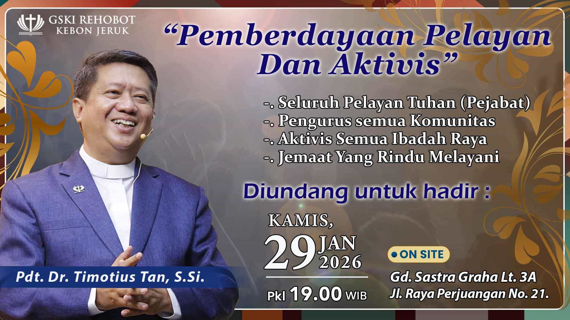 Menggembalakan GSKI Rehobot Kebon Jeruk yang beribadah Setiap Hari Minggu di Gedung Sastra Graha Kebon Jeruk Lantai 3A pukul 09.00 WIB dan GSKI Rehobot Citicon yang beribadah Setiap Hari Minggu di Menara Citicon Slipi Lantai 22 Pukul 16.00 WIB, dan Ibadah Tengah Minggu di Gedung Sastra Graha Lantai 3A.