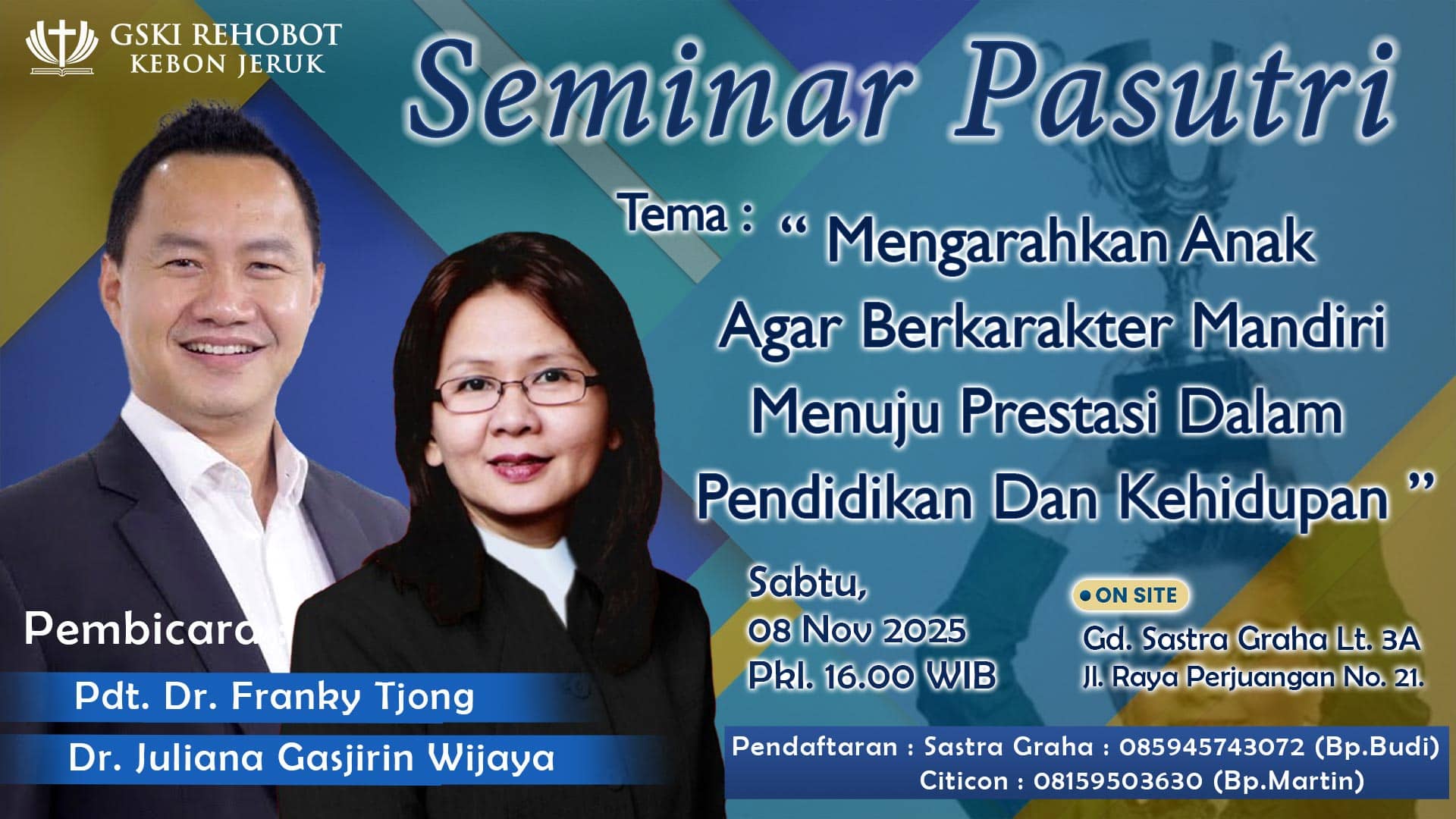 Menggembalakan GSKI Rehobot Kebon Jeruk yang beribadah Setiap Hari Minggu di Gedung Sastra Graha Kebon Jeruk Lantai 3A pukul 09.00 WIB dan GSKI Rehobot Citicon yang beribadah Setiap Hari Minggu di Menara Citicon Slipi Lantai 22 Pukul 16.00 WIB, dan Ibadah Tengah Minggu di Gedung Sastra Graha Lantai 3A.